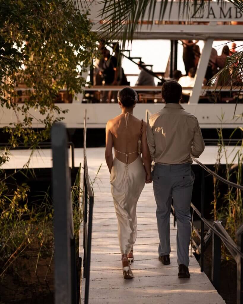 The Cruise Package is especially popular for wedding ceremonies with a difference. Couples can celebrate onboard one of Pure Africa’s luxury vessels – surrounded by water, sunset light and uninterrupted views – before returning to shore for a beautifully curated dinner reception. For more intimate groups, the entire evening can unfold on the boat itself with celebrations, dinner and cocktails. It’s a relaxed, elegant option that captures the essence of the Zambezi while allowing for full customisation of styling, music and menus.